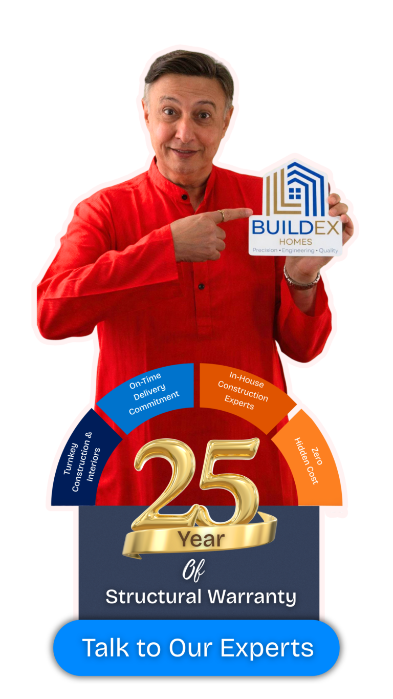 Buildex follows a strict quality assurance process in construction. Every stage of the build is reviewed through multi-level inspections, approved material checks, and engineering validations. Continuous site supervision and documented audits ensure your home is structurally strong, safe, and built to long-term standards.