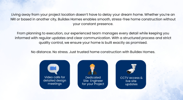 Construction timelines vary based on project scope, plot size, and design complexity. Buildex provides a clear schedule at the outset and maintains consistent progress updates, allowing homeowners to track construction at every stage.